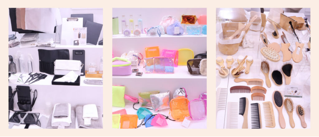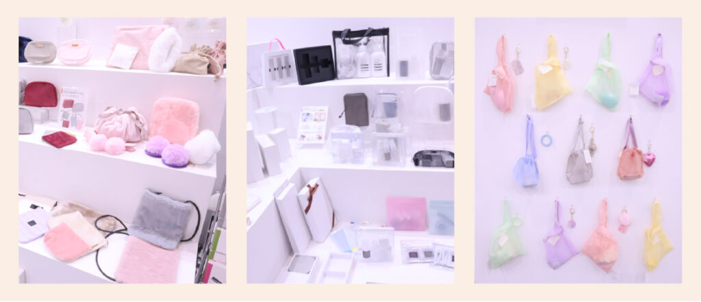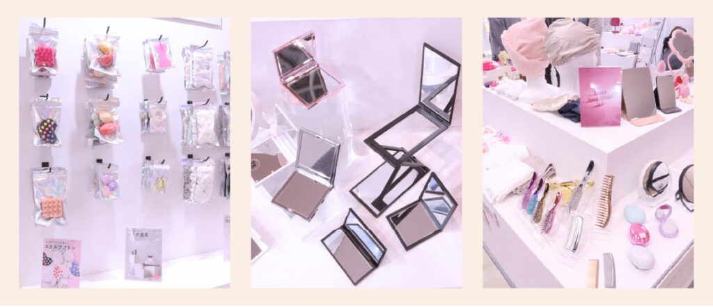 今年度は壁面への展示にも力を入れており、化粧雑貨OEM・ODMや、ノベルティGWPなどの展示を壁面側でアピールしました。結果は好評で多くのご来場者の方々の目に留めていただくことができました。