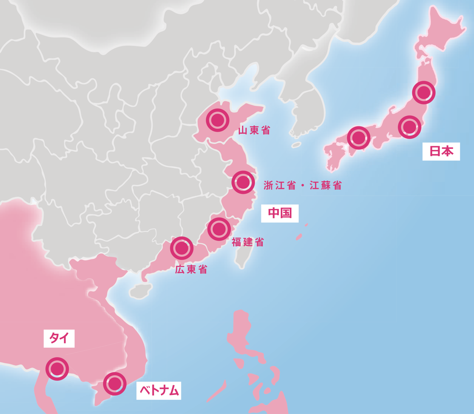 国内外取引先・350社以上のネットワークから最適なサプライヤーを選定・調達しております。この調達ネットワークにより付加価値をつけた商材提案が可能な体制となっております。
